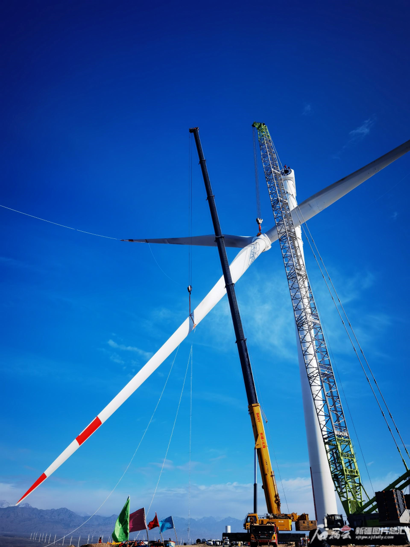 新疆金風科技股份有限公司吊裝風機現(xiàn)場(資料圖片)。石榴云/新疆日報記者趙悅攝