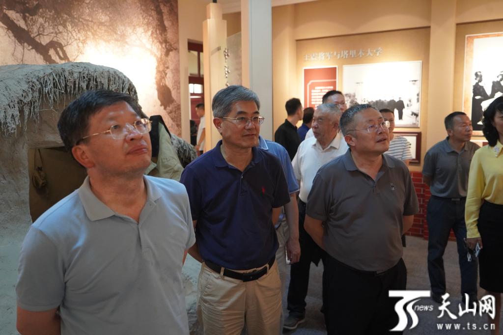 7月16日,參加中國(guó)工程院、自治區(qū)科協(xié)共同組織的“院士新疆行”活動(dòng)現(xiàn)代農(nóng)業(yè)調(diào)研組的院士、專家們參觀塔里木大學(xué)校史館。天山網(wǎng)-新疆日?qǐng)?bào)記者 王昕攝