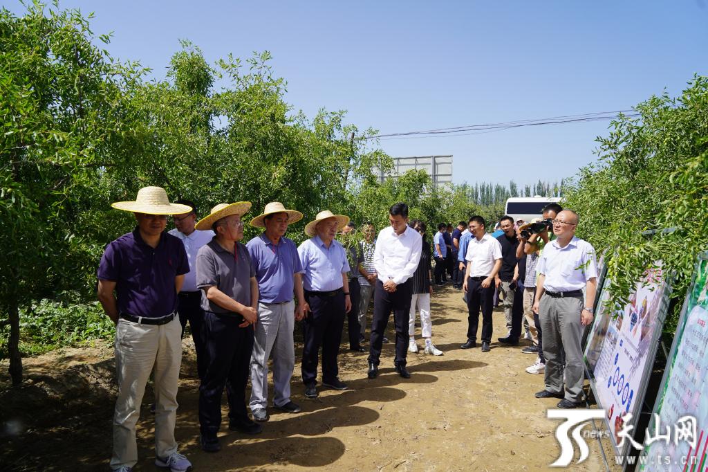 7月16日,參加中國(guó)工程院、自治區(qū)科協(xié)共同組織的“院士新疆行”活動(dòng)現(xiàn)代農(nóng)業(yè)調(diào)研組的院士、專家們?cè)诒鴪F(tuán)第一師阿拉爾市十三團(tuán)高標(biāo)準(zhǔn)紅棗示范園調(diào)研。天山網(wǎng)-新疆日?qǐng)?bào)記者 王昕攝