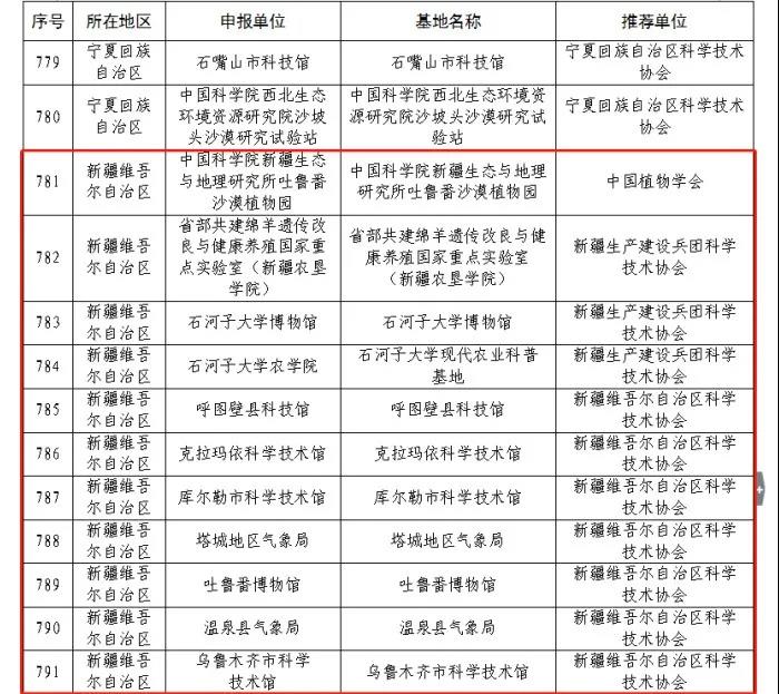 近日中國科學(xué)技術(shù)協(xié)會公布了2021—2025年第一批全國科普教育基地新疆18家單位上榜包括中國科學(xué)院新疆生態(tài)與地理研究所吐魯番沙漠植物園、石河子大學(xué)博物館、克拉瑪依科學(xué)技術(shù)館、溫泉縣氣象局等