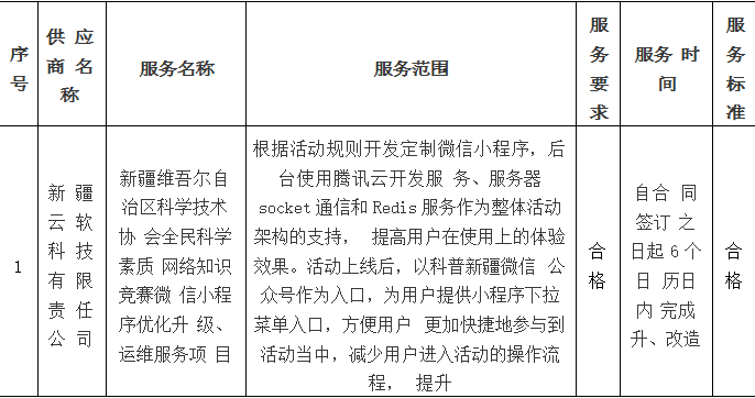 新疆維吾爾自治區科學技術協會全民科學素質網絡知識競賽微信小程序優化升級、運維服務項目成交公告