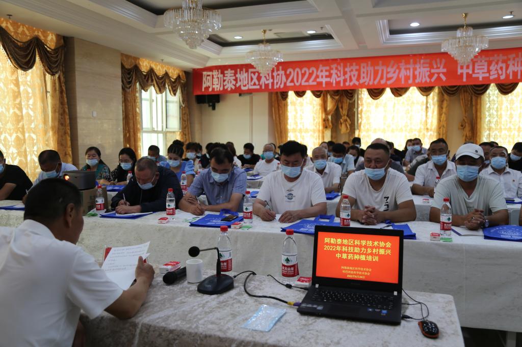 當(dāng)日上午,在哈巴河縣紫金酒店一樓會議室開展阿勒泰地區(qū)科協(xié)“2022年科技助力鄉(xiāng)村振興在行動—中草藥種植培訓(xùn)”,培訓(xùn)由哈巴河縣科協(xié)主席李海建主持,阿勒泰地區(qū)科協(xié)主席孜亞提汗·胡那皮亞作開場致辭,原地區(qū)農(nóng)業(yè)技術(shù)推廣中心主任、高級研究員、哈巴河縣中草藥種植特聘顧問鄧世豪,阿勒泰地區(qū)農(nóng)業(yè)技術(shù)推廣中心中草藥技術(shù)推廣站站長、高級農(nóng)藝師嚴(yán)麗作專題授課。