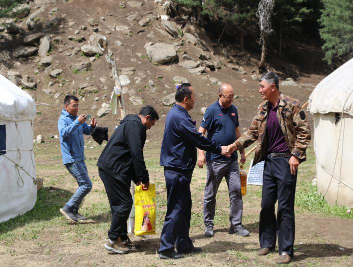7月6日,阿勒泰地區(qū)科協(xié)黨組成員、主席孜亞提汗·胡那皮亞同志帶領(lǐng)科普隊(duì)干部前往地區(qū)鄉(xiāng)村振興示范村富蘊(yùn)縣鐵買克鄉(xiāng)宏泰新村夏牧場(chǎng)開(kāi)展“七一”、古爾邦節(jié)走訪慰問(wèn)困難群眾活動(dòng),為困難群眾送去黨組織的關(guān)懷與節(jié)日祝福。