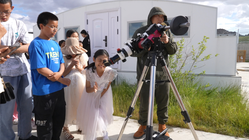 在墩德布拉克洞穴彩繪巖畫前,學(xué)生和家長代表一邊參觀,一邊傾聽巖畫歷史,感受其蘊(yùn)含的歷史文化內(nèi)涵。在阿勒泰天文臺,通過了解不同觀測設(shè)備的操作方法,激發(fā)了他們掌握觀測方法的興趣。