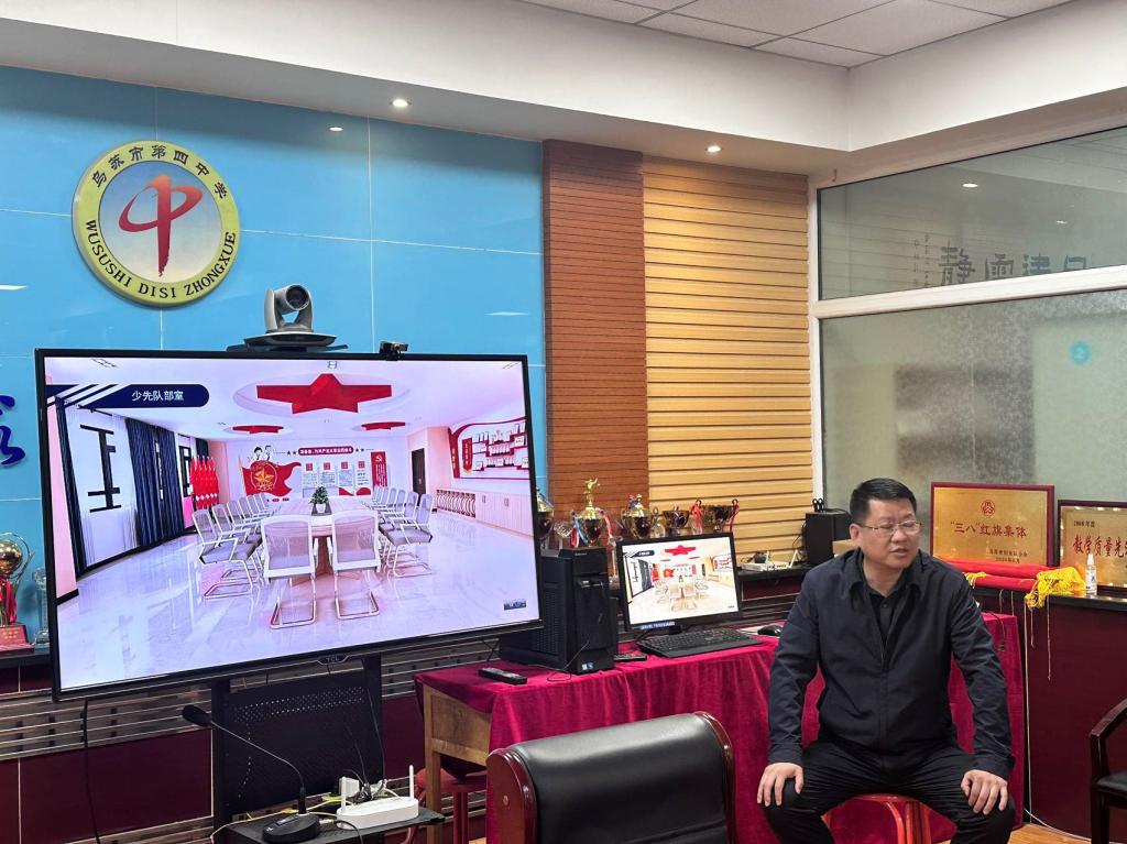 檢查指導組聽取觀看了學校負責人的匯報與PPT,了解了第四中學在科技教育硬件設施、教學資源和科學普及工作的總體情況。