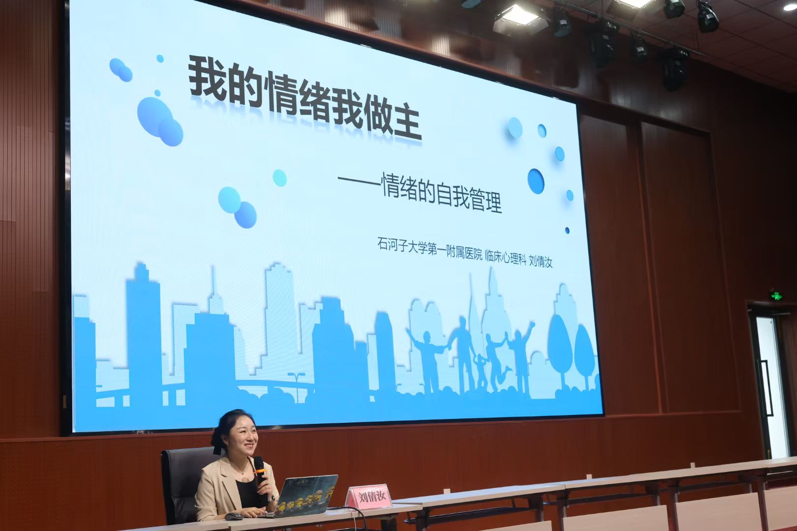 活動現場,劉醫師與大家互動開場,從認識情緒、情緒是如何產生的、消極情緒與積極情緒的影響等多個方面進行了情感的剖析。同時,通過引用實際案例結合學生問答的方式寓教于樂,引導學生客觀認識情緒、接納情緒、管理情緒,做情緒的主人。
