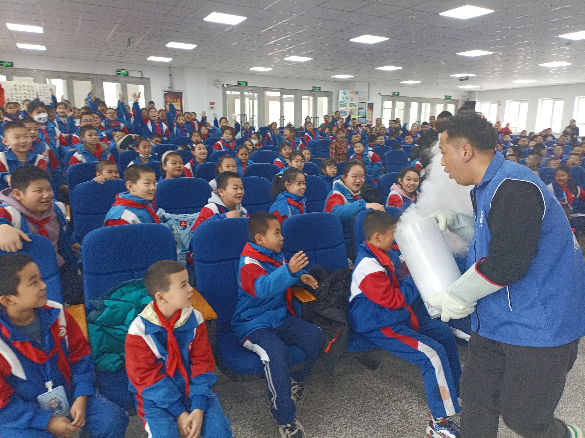 現(xiàn)場(chǎng),9個(gè)科學(xué)實(shí)驗(yàn)各具特色。“云霧仙境”營(yíng)造出如夢(mèng)似幻的景象,宛如童話世界降臨校園;品嘗干冰環(huán)節(jié),孩子們小心翼翼又滿是好奇,新奇的體驗(yàn)讓笑聲與驚嘆聲交織;干冰滅火演示,讓大家直觀理解科學(xué)在生活中的應(yīng)用;空氣渦流炮氣勢(shì)十足,強(qiáng)大氣流帶來(lái)震撼的視覺沖擊。