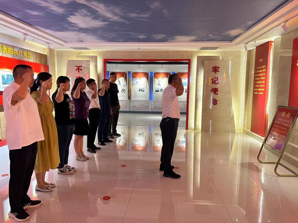 參觀結(jié)束時(shí),博州科協(xié)全體黨員干部整齊列隊(duì),面對(duì)黨旗舉起右拳集體宣誓,重溫入黨誓詞。
