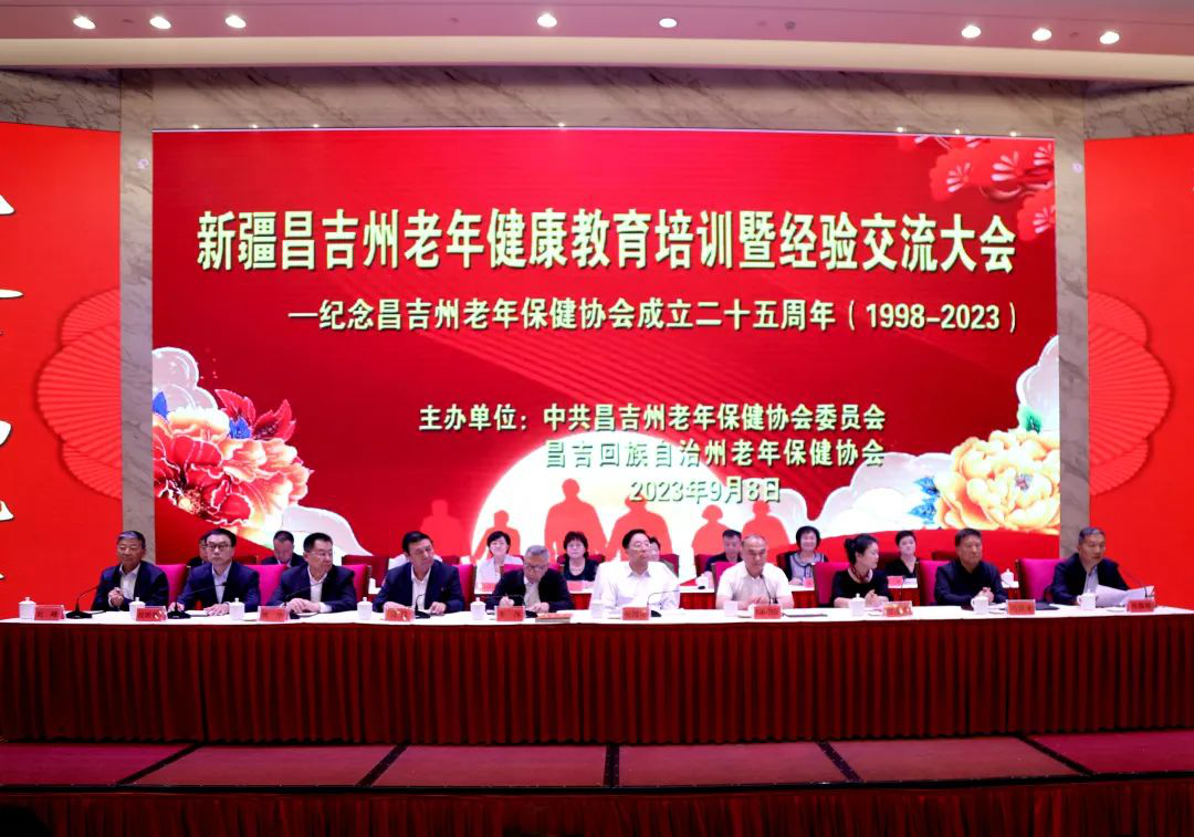 為慶祝昌吉州老年保健協會成立25周年,9月8日,昌吉州老年健康教育培訓暨經驗交流大會在昌吉園林賓館召開。會議以“認真學習貫徹黨的二十大精神,努力做好新時代老年保健工作,為建設健康中國健康新疆作出新貢獻”為主題。自治區第十屆、第十一屆人大常委會副主任、黨組副書記,自治區科協名譽主席,中國第六屆老科協副會長,新疆老科協會長張國梁,中國老年保健協會副秘書長段西普、老年康樂報社原社長、自治區老年學學會會長江金芳、昌吉州人民政府副州長吐爾遜江?艾拜多拉等相關領導出席活動。昌吉州民政局、老干部局、科協、社科聯等州直主管部門的領導及縣市主管部門領導、各大協會、州保健協會分會、會員單位、文藝團隊等單位的領導及會員代表近300人參加了會議。