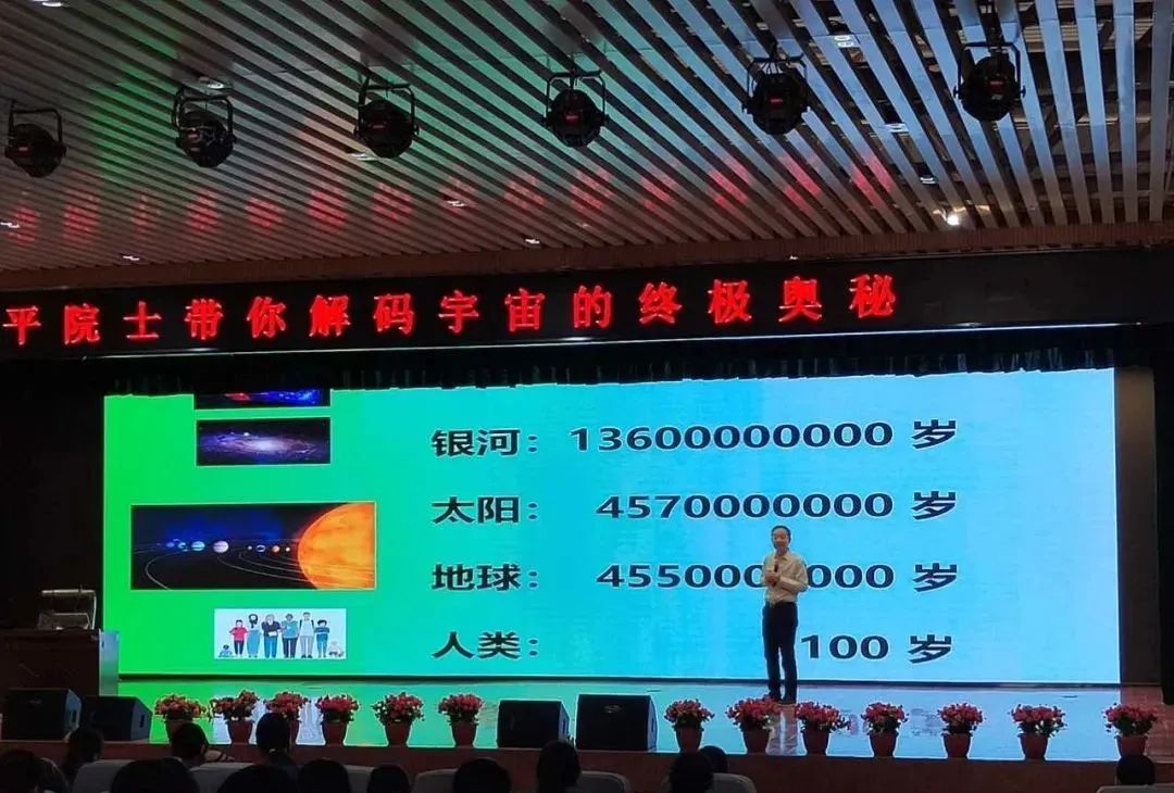 武向平院士憑借其深厚的學(xué)術(shù)造詣與豐富的科普經(jīng)驗,用生動形象、通俗易懂的語言,深入淺出地講解了 “宇宙是什么、從哪里來、到哪里去,誰在決定宇宙的命運(yùn)” 等一系列引人深思的問題。在講解過程中,武院士運(yùn)用大量生動有趣的例子與高清震撼的圖片、視頻,向師生們演示了宇宙結(jié)構(gòu)的形成和演化過程。從廣袤無垠的星系,到神秘莫測的黑洞、中子星等天體;從宇宙誕生之初的大爆炸理論,到未來宇宙的可能走向,每一個知識點都被武院士講述得妙趣橫生,牢牢吸引著臺下師生們的目光。大家全神貫注,沉浸在這場宇宙知識的盛宴中,親身感受著宇宙的浩瀚與神奇。