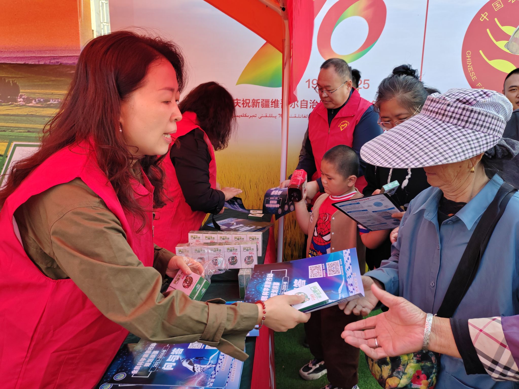 2025年新疆“中國農(nóng)民豐收節(jié)”昌吉市六戶鎮(zhèn)十三戶村主會場,除了瓜果飄香的豐收圖景,昌吉州科學技術協(xié)會的科普攤位前同樣熱鬧非凡。紅色展棚上“科技賦能生活 智慧連接你我”的標語格外醒目,成為豐收節(jié)里一道別樣的“科普風景線”。