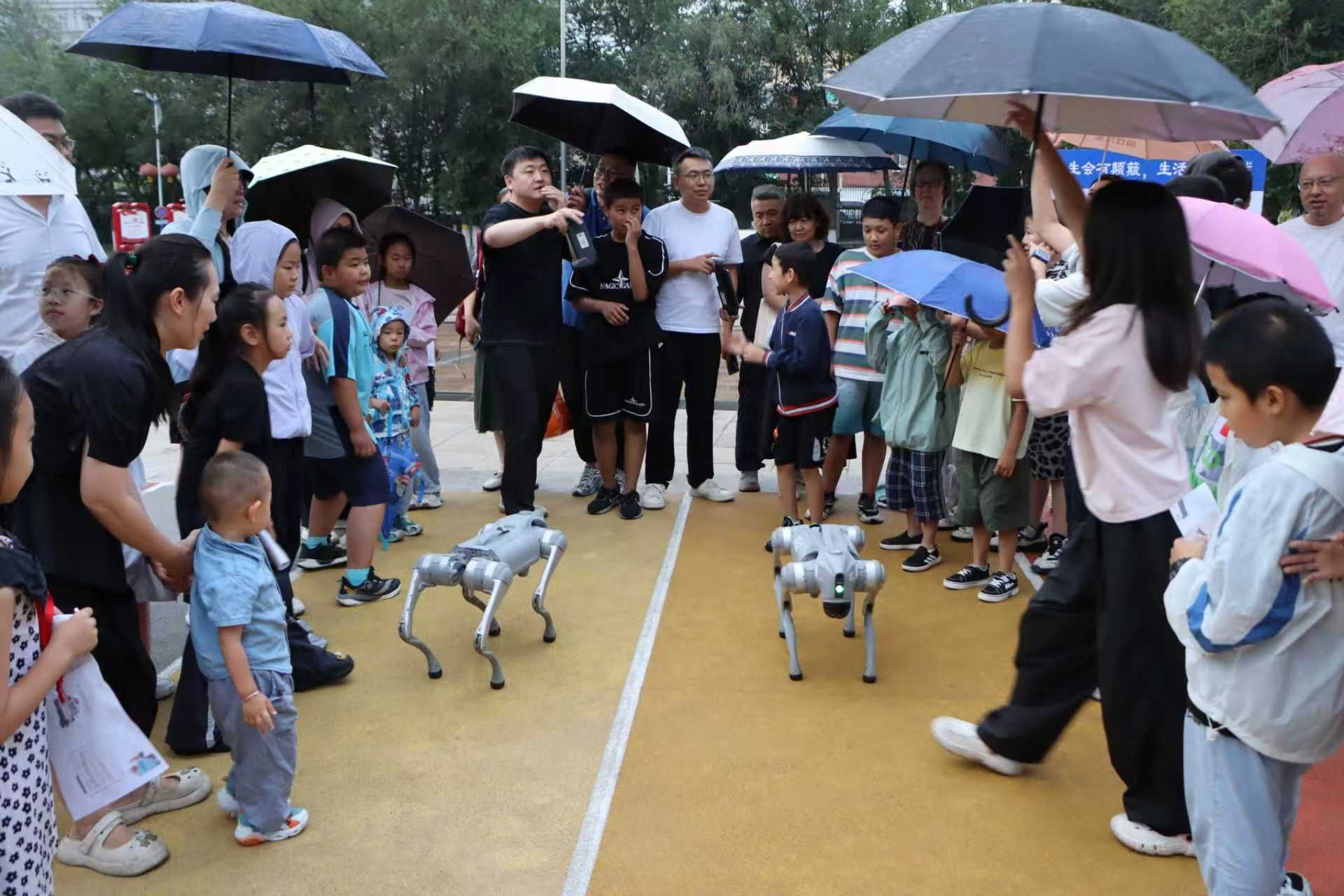 活動伊始,兩條靈動的機器狗驚艷亮相,瞬間成為全場焦點。它們身手矯健,翻跟頭、打招呼、比心等動作一氣呵成,還帶來了一段動感十足的舞蹈,引得現場觀眾紛紛模仿,歡聲笑語回蕩在科技館內。隨后,緊張刺激的機器狗跑步比賽更是將氣氛推向高潮,周圍人群的歡呼聲、加油聲此起彼伏,現場一片沸騰。