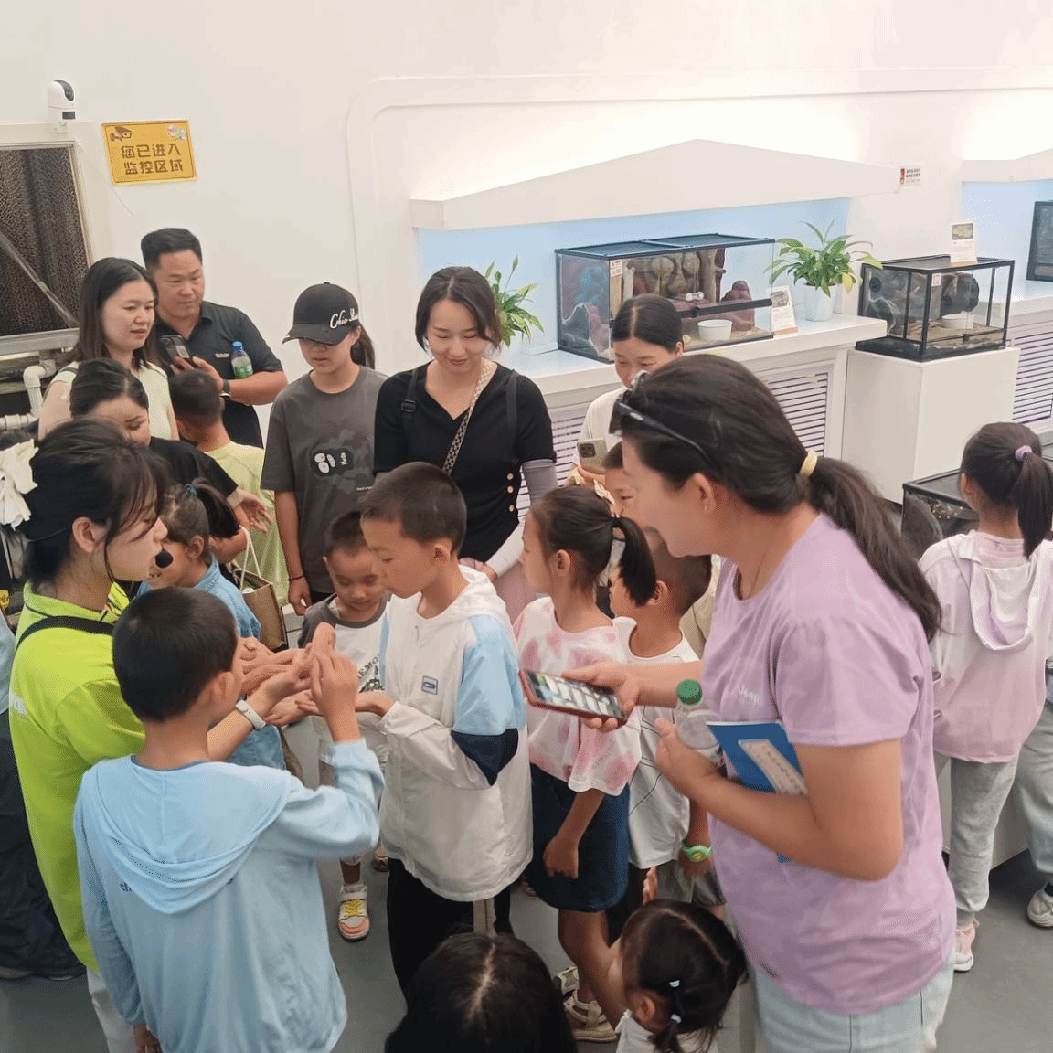 理論講解結束后,孩子們在科普輔導員的帶領下走進博物館里的“蝴蝶館”。館內不僅有飛舞的成年蝴蝶,還陳列著不同階段的蝴蝶蛹——有的蛹呈淺綠色,與葉片顏色相近;有的蛹帶著金色紋路,在燈光下格外亮眼。科普輔導員手把手指導孩子們觀察蛹的外形特征,講解“如何通過蛹的顏色判斷蝴蝶是否即將破繭”,還讓孩子們輕輕觸摸蛹的外殼,感受其質地,將課堂上抽象的“蛻變”概念,轉化為觸手可及的具象認知?!霸瓉碛济饋硎怯驳模抑耙詾槭擒浀模 币晃恍∨笥雅d奮地和同伴分享自己的發現。