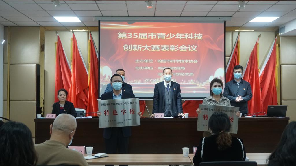 同時,會議對獲得自治區青少年科技活動特色學校榮譽稱號的哈密市第二小學、哈密市第十二中學以及獲得自治區青少年科技活動示范學校榮譽稱號的哈密市第六小學進行了表彰。