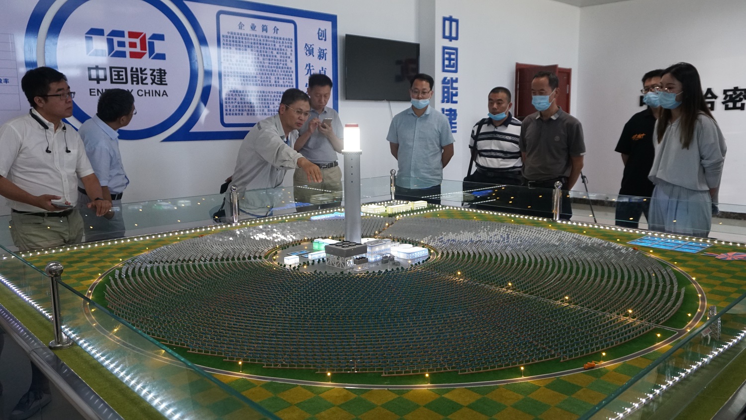 7月8日,課題組專家一行前往伊吾縣淖毛湖鎮工業園區,實地考察由中國能建投資公司投資建設的哈密50兆瓦熔鹽塔式光熱發電站,并與技術人員進行了現場交流,對熔鹽塔式光熱發電站的運行、管理、維護、技術路線、能耗等情況進行了深入了解。