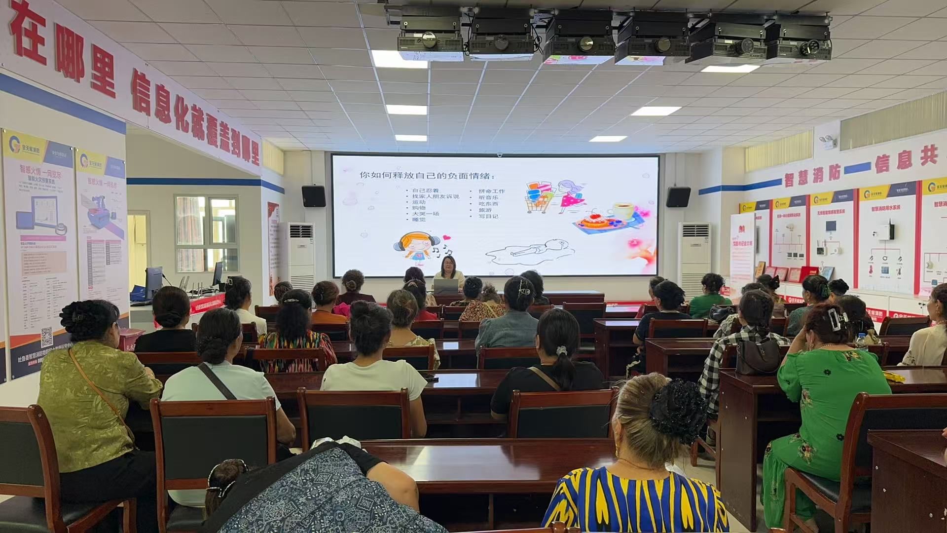 參觀結束后,由媄樂心理咨詢的美熱木老師為大家帶來了一場主題為“如何緩解心理壓力”的專題課程。美熱木老師結合婦女在家庭和社會中的多重角色,通過案例分析、互動問答等方式,生動講解了心理壓力的成因、表現及緩解方法,引導大家學會情緒管理,提升心理調適能力。現場氣氛熱烈,婦女們積極參與互動,紛紛表示受益匪淺。