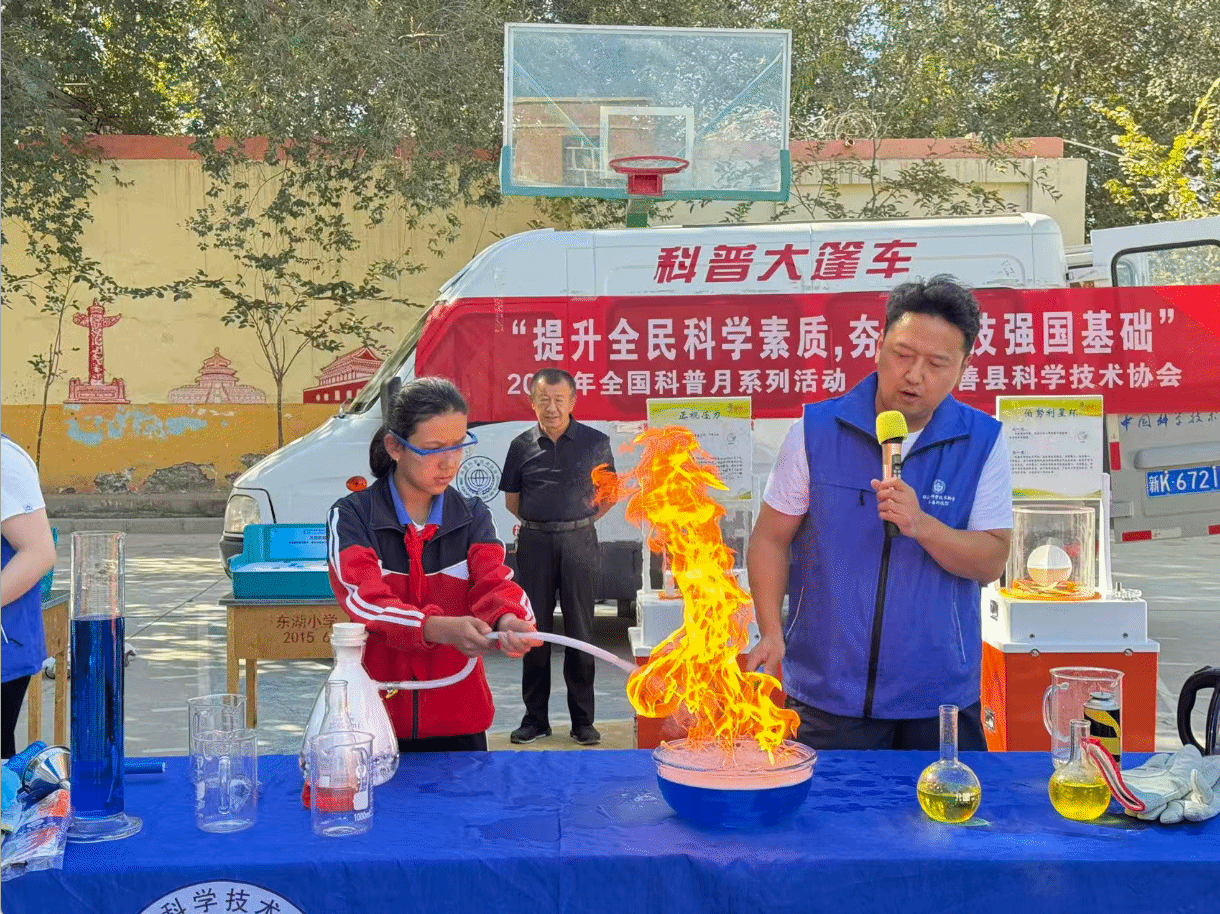 活動現場,科普大篷車化身為流動科技館,懸掛全國科普月宣傳橫幅2條、鑄牢中華民族共同體意識宣傳橫幅1條、展出8類主題科普展板22張(其中鑄牢中華民族共同體意識展板7張),展出魚洗、神奇的箭頭、機械伸縮花、正視壓力、伯努利星環、實物金字塔、圖形變換、珠子塔8件科普展品,直接受益師生401人。