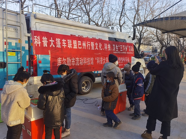 在科普大篷車聯盟暨“科技之冬”系列活動中,3輛科普大篷車帶著各式各樣的科普教具、展品、機器人等科技展品走進農村,通過體驗式、互動式、探究式的科普實踐活動,開闊了農牧民群眾的眼界。