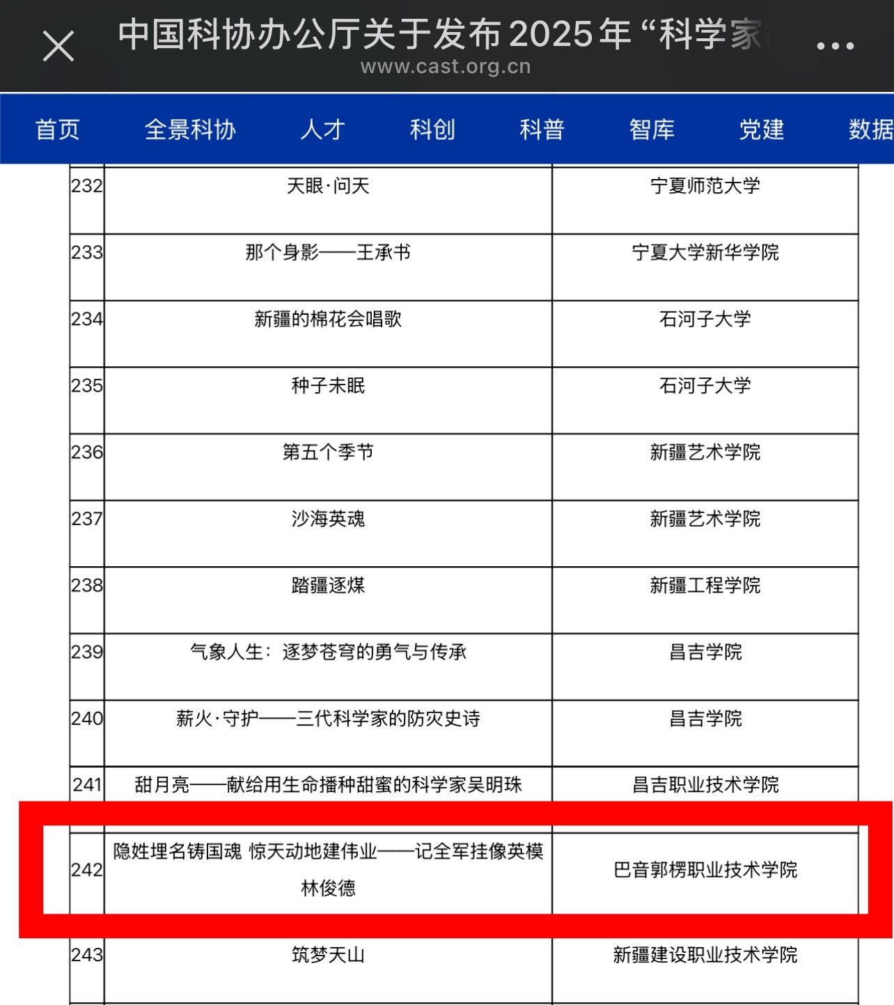 中國科學(xué)技術(shù)協(xié)會(huì)2025年"科學(xué)家故事舞臺(tái)劇推廣行動(dòng)"劇目評(píng)選結(jié)果近日揭曉,巴州原創(chuàng)劇目《隱姓埋名鑄國魂 驚天動(dòng)地建偉業(yè)——記全軍掛像英模林俊德》榮列其中。