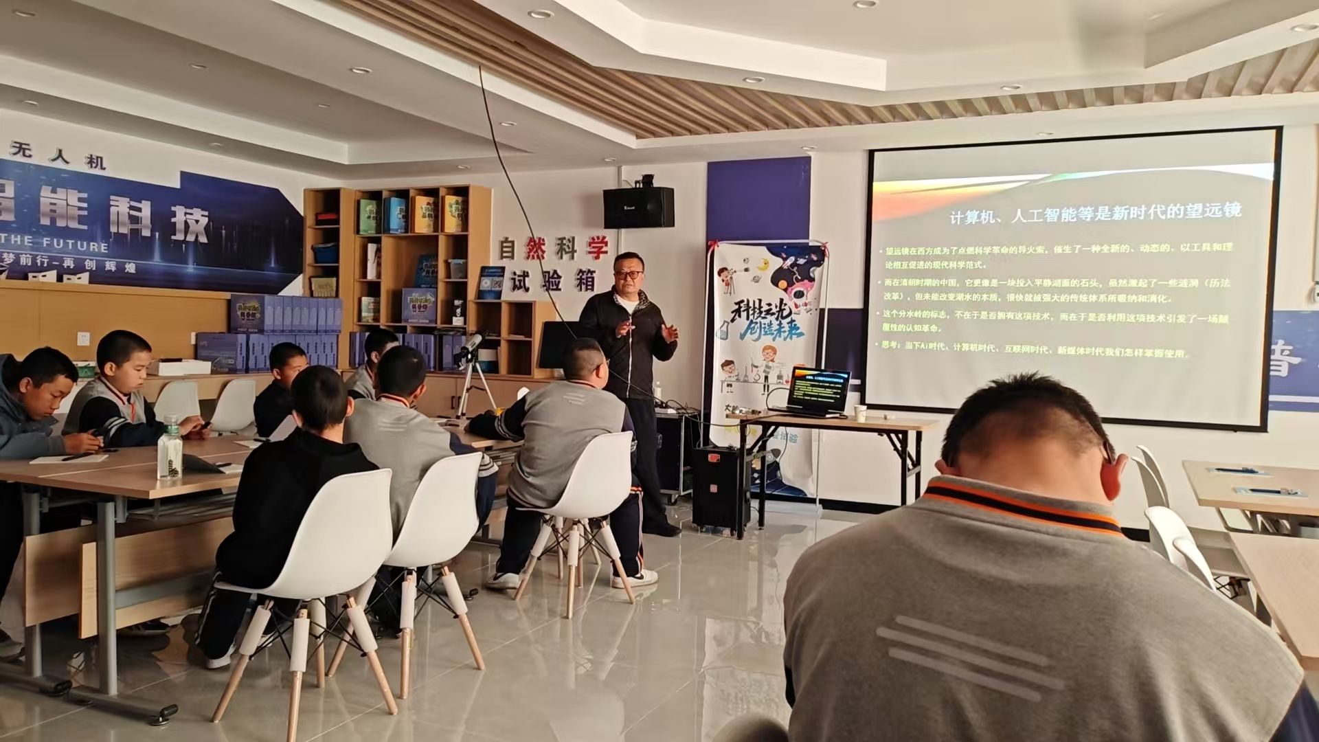 李健會長以“計算機與人工智能是新時代的望遠鏡”為引,帶領營員們回顧了望遠鏡在推動人類科學革命中的重要作用,并生動地將計算機與人工智能喻為“新時代的望遠鏡”。深入淺出的闡釋激起了青少年們對宇宙奧秘的好奇。活動現場,學生們專注聆聽、認真記錄,積極互動交流,展現出對宇宙奧秘的濃厚興趣與探索熱情。