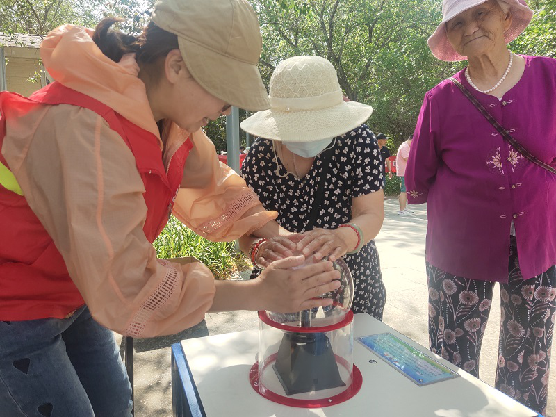 “這些設(shè)備是干什么用的呀?”一位晨練的老大爺饒有興趣的盯著科普大篷車前的科學(xué)儀器詢問科普志愿者。伴隨著居民群眾的疑問,今天的反邪教警示教育科普宣傳活動(dòng)正式拉開了帷幕。“大爺,這些都是科學(xué)儀器,來,您用雙手感受一下。”科普志愿者帶領(lǐng)現(xiàn)場群眾深入體驗(yàn)科學(xué)帶來的神奇魅力。